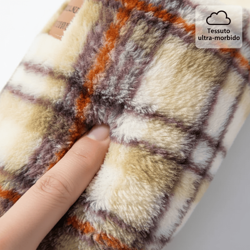CaldoFelt si distingue grazie al suo materiale in pile morbido e caldo che avvolge i tuoi piedi, mentre il design elegante a quadri aggiunge un tocco di stile.