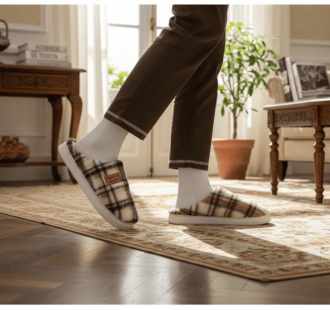 Dopo una lunga giornata, niente di meglio di un momento di relax per i tuoi piedi. Con CaldoFelt, le tue pantofole in pile a quadri, ogni passo in casa diventa un istante di tranquillità.