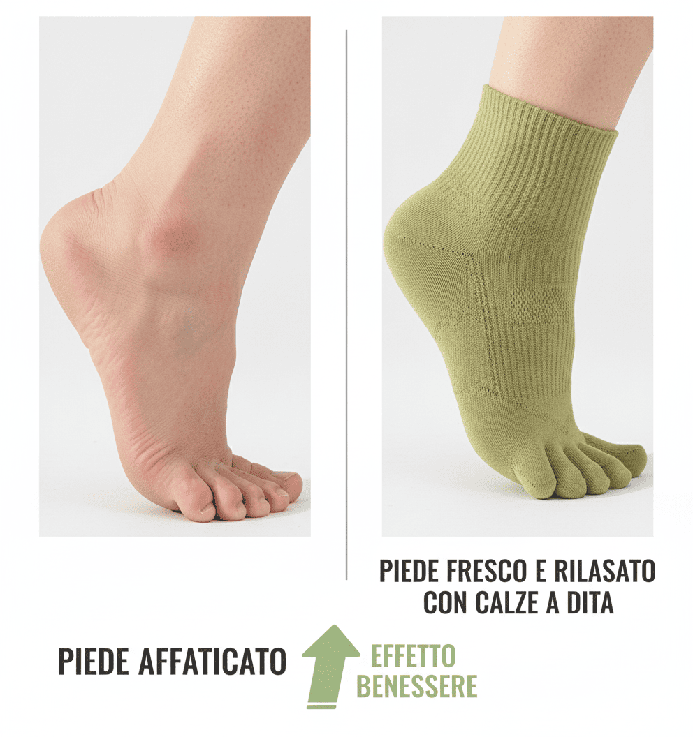 Le Five Finger Socks offrono supporto ortopedico e compressione mirata, migliorando la circolazione sanguigna e alleviando la fatica.