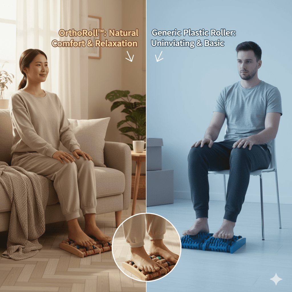 OrthoRoll™ è il massaggiatore perfetto per chi cerca un metodo naturale per prendersi cura dei propri piedi. Con il suo design in legno, stimola i punti riflessi e allevia la fatica accumulata durante la giornata, migliorando la circolazione e il comfort in modo semplice e pratico.
